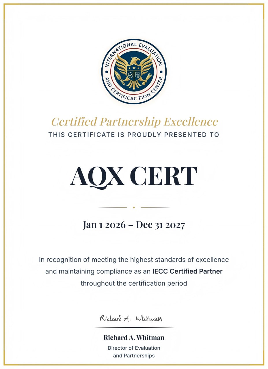 AQX Cert operates under the official oversight of the IECC. This independent third-party board ensures our audit standards remain impartial and globally recognized in the private sector.